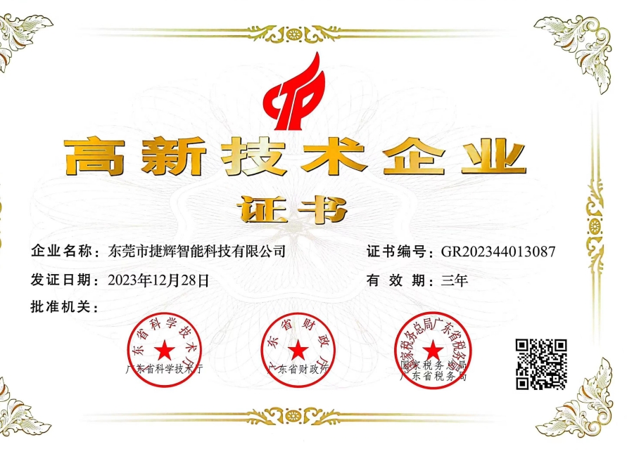 國(guó)家高新技術(shù)企業(yè)認(rèn)證是對(duì)企業(yè)自主研發(fā)能力、技術(shù)創(chuàng)新水平及市場(chǎng)競(jìng)爭(zhēng)力的高度肯定。捷輝智能此次獲評(píng),得益于以下核心優(yōu)勢(shì):